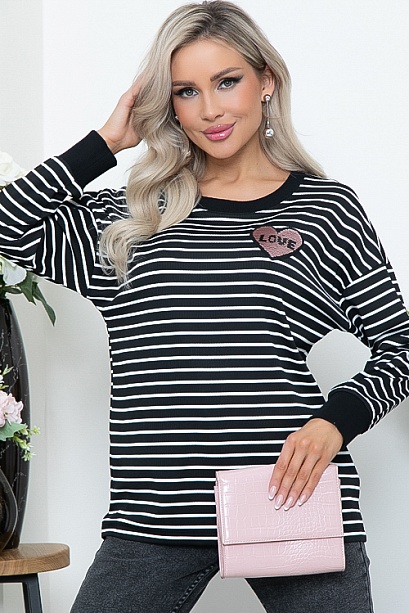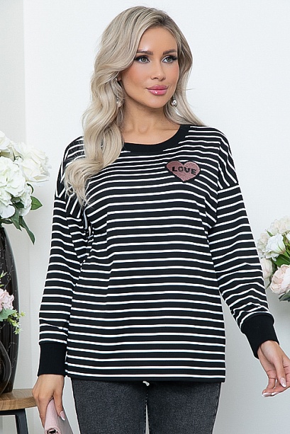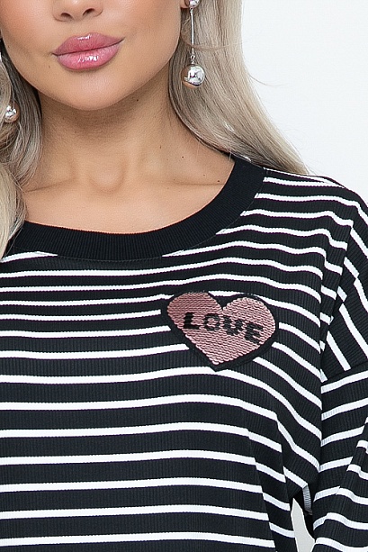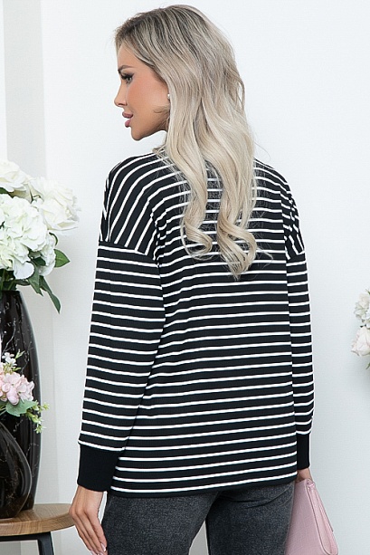 Джемпер из трикотажного полотна рибана в полоску(трикотаж лапша производство Турция) свободного силуэта.Горловина и манжеты отделаны хлопковой,трикотажной рибаной.По полочке декоративный элемент.