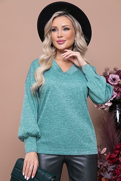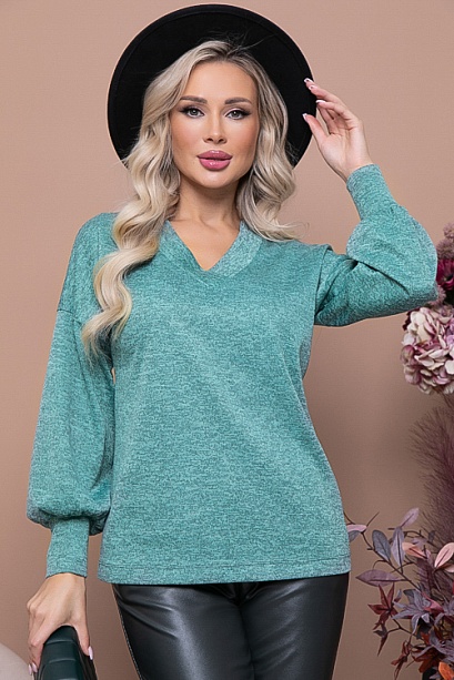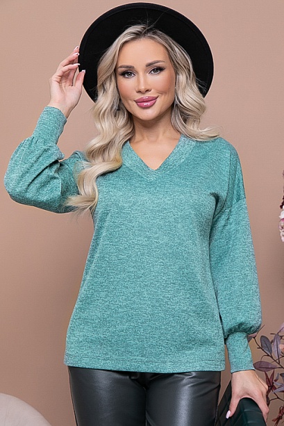 Джемпер из трикотажного полотна с V-вырезом горловины.