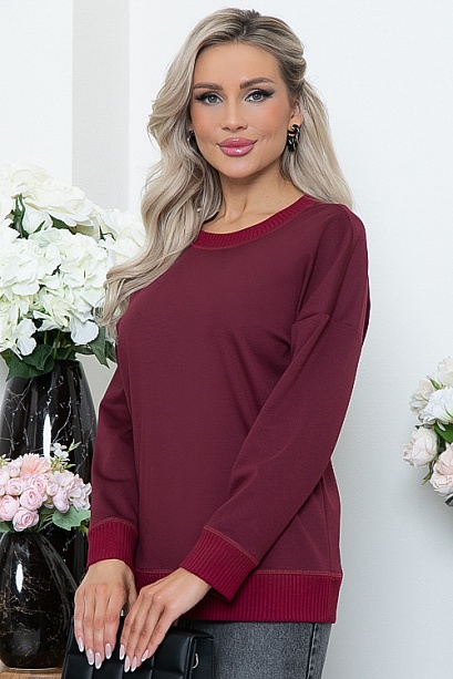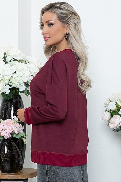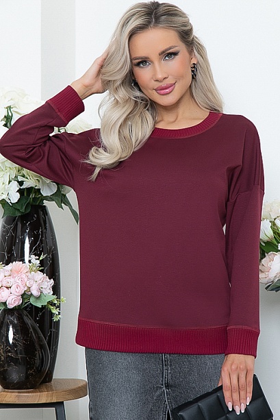 Джемпер из трикотажного полотна джерси свободного силуэта с отделкой трикотажной рибаной.