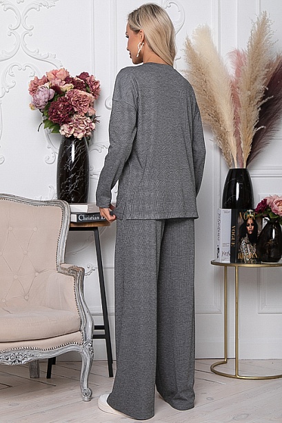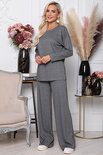 Брючный комплект из комфортного к телу, качественного трикотажного полотна мелкая лапша(ткань производство Турция).Джемпер свободного силуэта с разрезами по бокам.Брюки свободного силуэта расклешенные к низу,с высокой посадкой и эластичной резиной по поясу.По бокам функциональные карманы.Костюм идеально вариант для спорта,отдыха и прогулок.