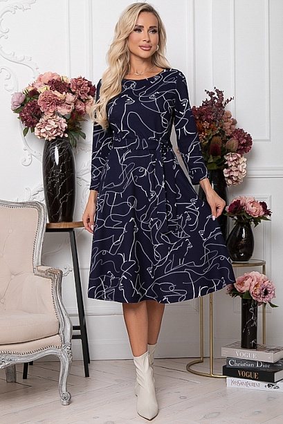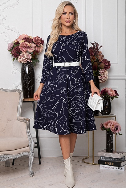 Платье из трикотажного полотна,отрезное по линии талии, с расклешенной юбкой,с удобными карманами в боковых швах.Пояс из основной ткани в комплекте.Ремень в комплект не входит.