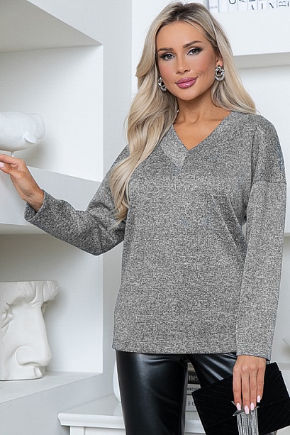 Джемпер из трикотажного полотна свободного силуэта с V-вырезом горловины.