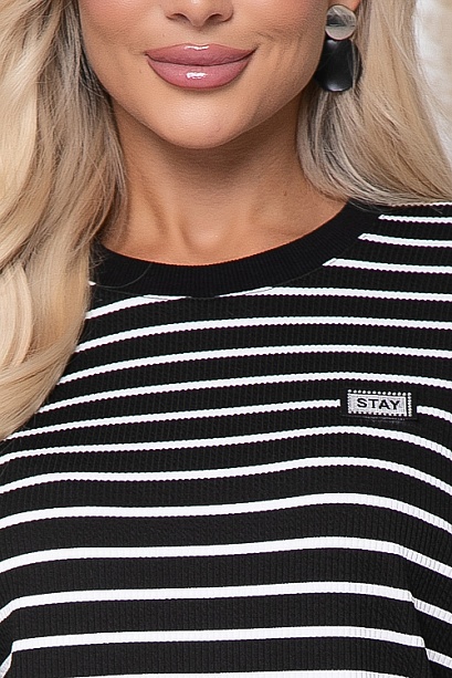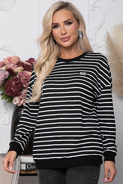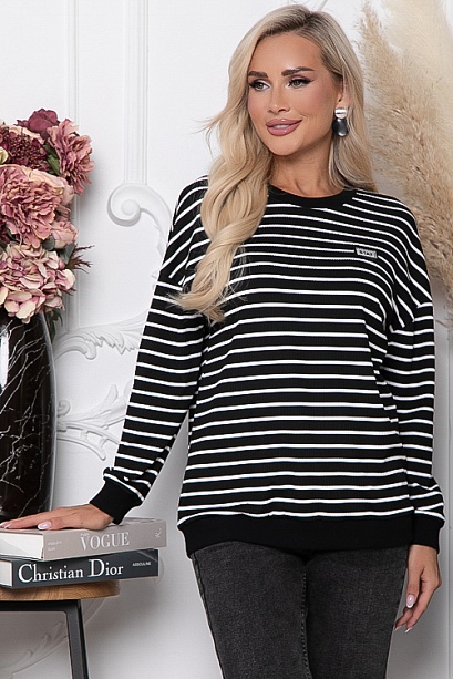 Джемпер из трикотажного полотна рибана в полоску(трикотаж лапша производство Турция) свободного силуэта.Горловина и манжеты отделаны хлопковой,трикотажной рибаной.По полочке декоративный элемент.