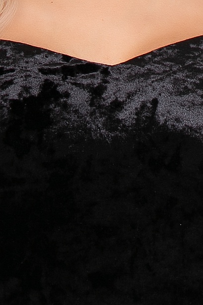 Платье из бархата прилегающего силуэта с вырезом каре.