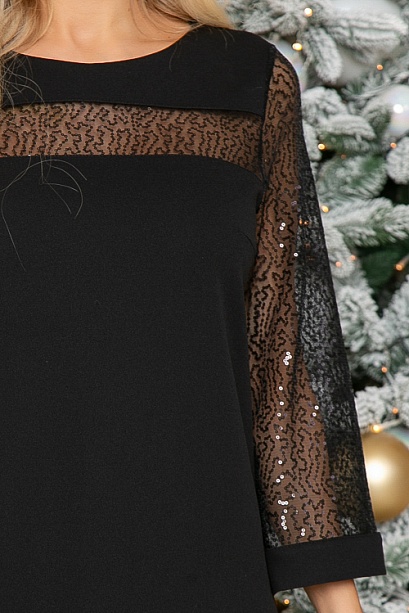 Платье трапецевидного силуэта из трикотажного полотна,комбинированно сеткой с пайетками.