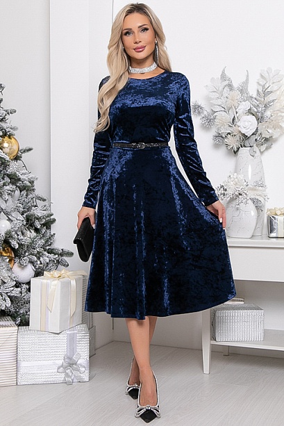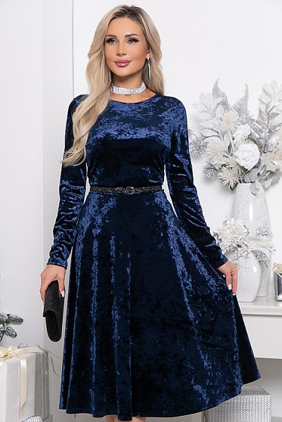 Бархатное платье,отрезное по линии талии с расклешенной юбкой.