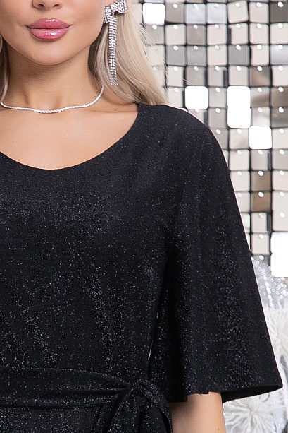 Нарядное платье из трикотажного полотна с блеском,отрезное по линии талии.Пояс из основной ткани в комплекте.