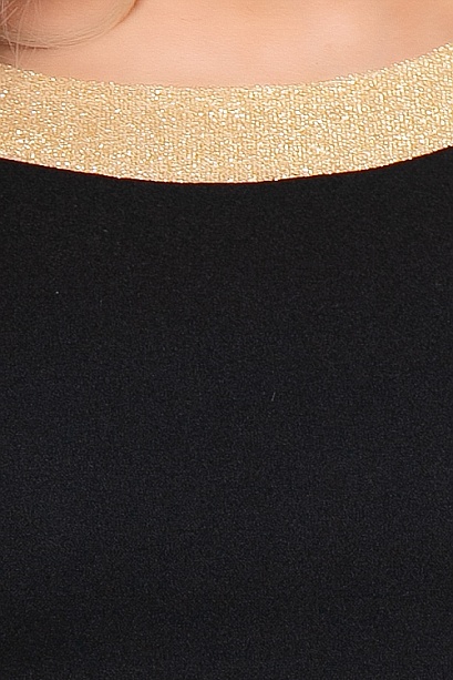 Платье из трикотажного полотна,отрезное по линии талии с расклешенной юбкой.Верх изделия с цельнокроеными рукавами. Горловина,манжеты и поясок-из трикотажа с люрексом. 30% вискоза,65% п/э,5% лайкра