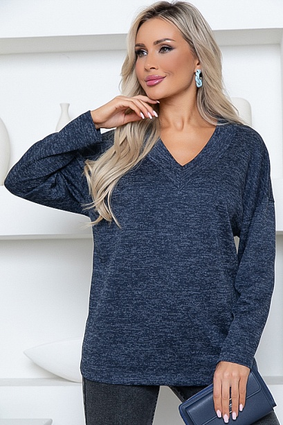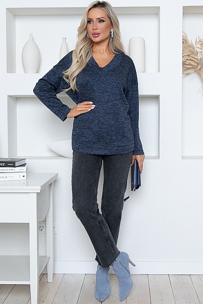 Джемпер из трикотажного полотна свободного силуэта с V-вырезом горловины.