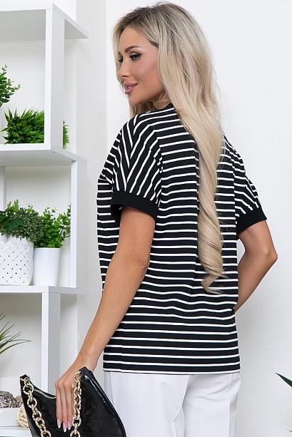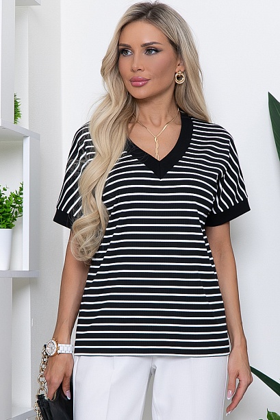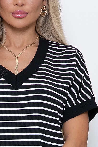 Джемпер с V-вырезом горловины из трикотажного полотна рибана в полоску(мелкая лапша производство Турция) свободного силуэта.Горловина и манжеты оформлены хлопковой,трикотажной рибаной(производство Турция)