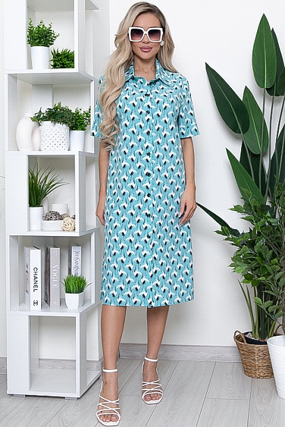 Платье-рубашка из текстильного полотна свободного силуэта с разрезами по бокам,с центральной застежкой на пуговицы.Воротник отложной на стойке.Пояс из основной ткани в комплекте.Ремень в комплект не входит.