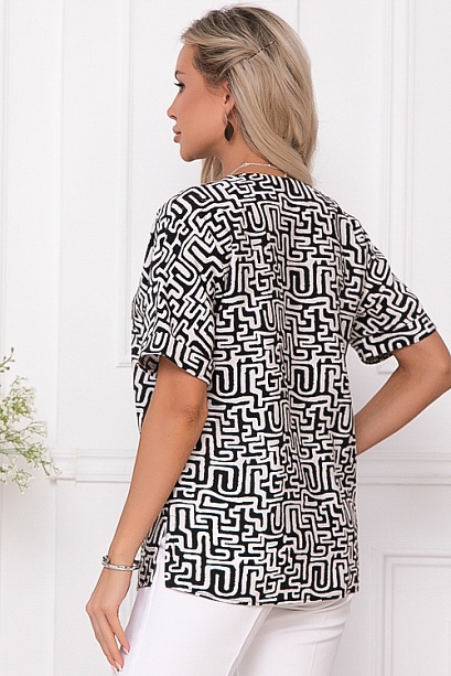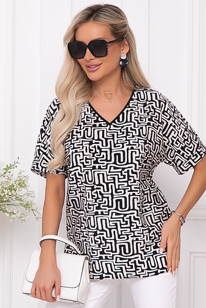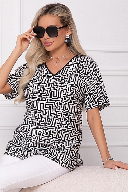 Блузка из комфортного текстильного полотна свободного силуэта с цельнокроеными рукавами,V-вырезом горловины и разрезами в боковых швах.