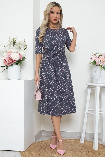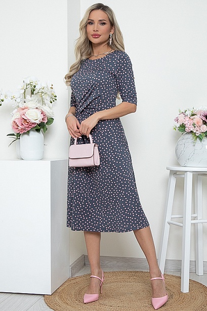 Платье из  трикотажного полотна А-образного силуэта.Перед платья с эффектной драпировкой в области талии с одной стороны. 30% вискоза,65% п/э,5% лайкра