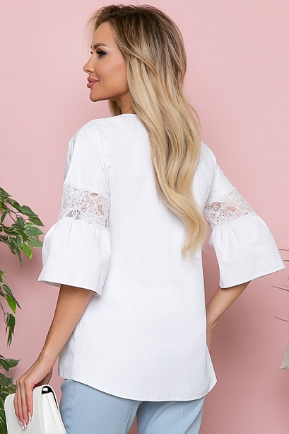 Блузка из текстильного полотна с хлопком в составе и плетеным хлопковым кружевом.