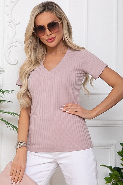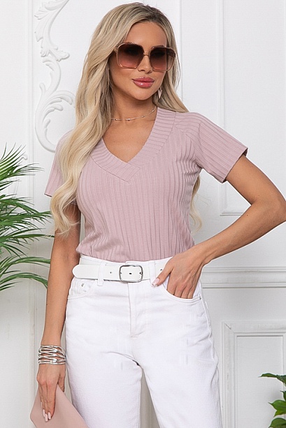 Блузка из трикотажного полотна лапша с V вырезом горловины.