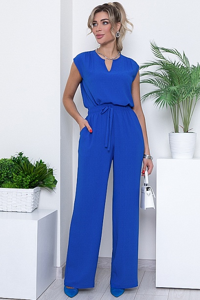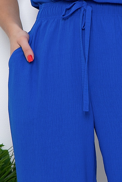 Комплект брючный.Блузка свободного силуэта с разрезами по бокам.Легкие брюки свободного,прямого силуэта из комфортного текстильного полотна, удобную посадку по талии обеспечивает эластичный пояс на резинке с кулиской,В боковых швах функциональные карманы.