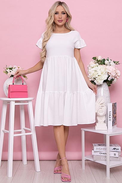 Платье из текстильного полотна свободного А-образного силуэта с двумя ярусами оборок.