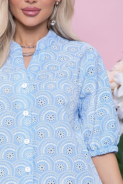 Хлопковое платье свободного А-образного силуэта с притачным воланом по низу.Воротник стойка и центральная застежка на петли пуговицы до волана.