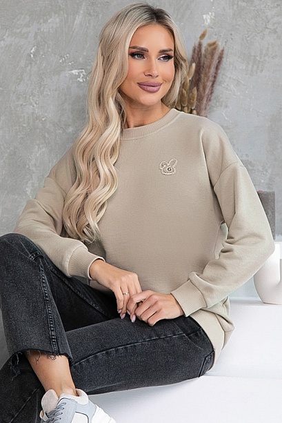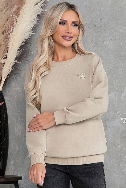 Свитшот свободного силуэта из хлопкового трикотажного полотна футер трехнитка(ткань производство Турция) с отделкой трикотажной рибаной и декоративным элементом.