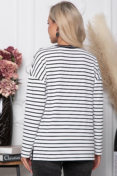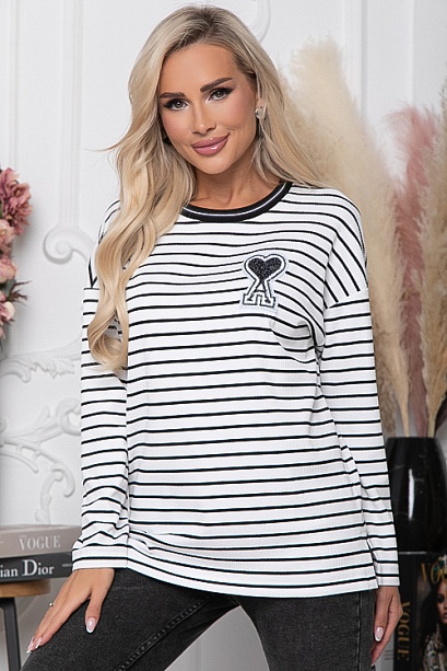 Джемпер из трикотажного полотна рибана в полоску(трикотаж лапша производство Турция) свободного силуэта.По горловине трикотажный подвяз.По полочке декоративный элемент.