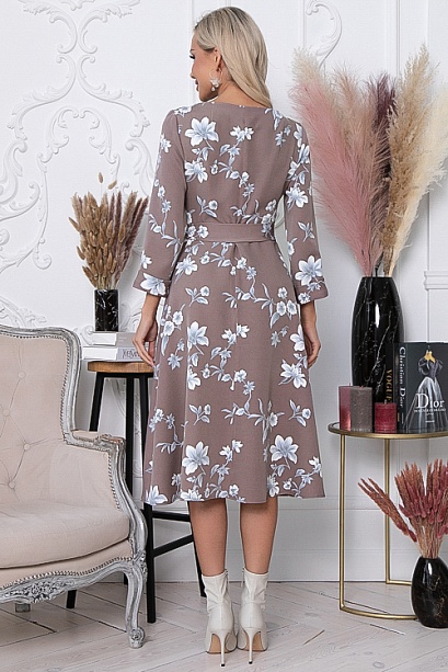 Платье из костюмной ткани,отрезное по лини талии,с расклешенной юбкой,по спинке застежка молния.В комплекте пояс из основной ткани.Ремень в комплект не входит. 50% вискоза,45% п/э,5% лайкра