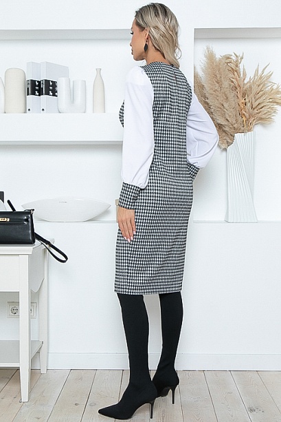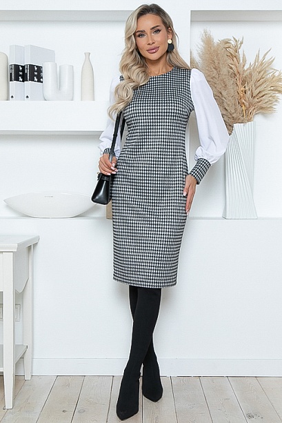 * Комбинированное платье из жаккардового трикотажного полотна с рукавами из текстильного полотна. Ремень в комплект не входит.