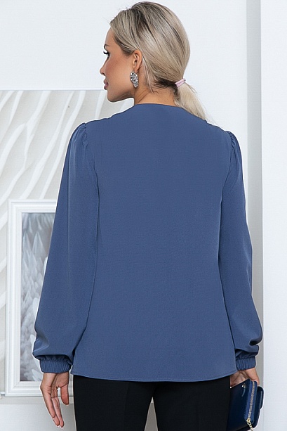 * Блузка из текстильного полотна свободного силуэта с декоративной отделкой по горловине.