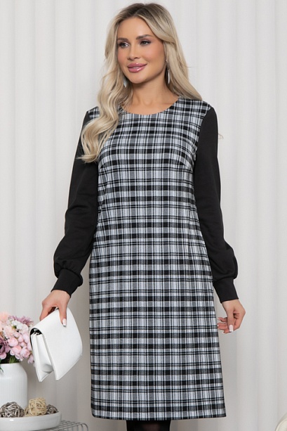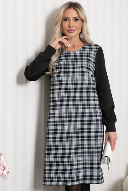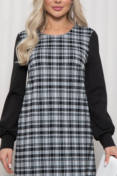 * Комбинированное платье из трикотажного полотна в клетку и трикотажа джерси.