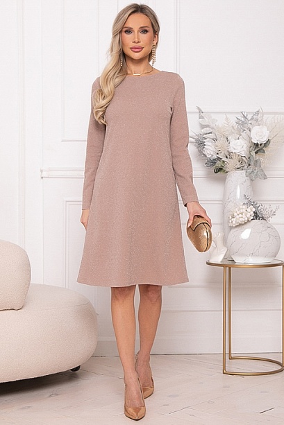 * Платье А-образного силуэта из трикотажного полотна с легким люрексом.Изюминка платья-вырез по спинке с завязывающимся бантом из шелка.