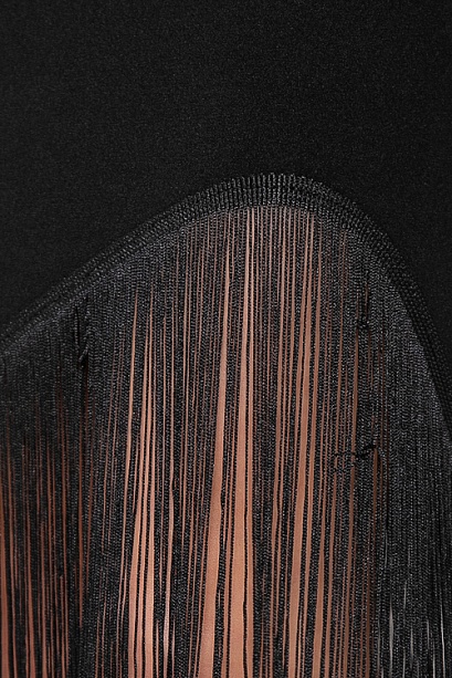 * Нарядное платье из трикотажного полотна украшено бахромой по низу.