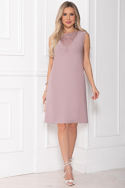* Платье из костюмной ткани А-образного силуэта.Горловина оформлена нарядной вставкой из трикотажа с пайетками.