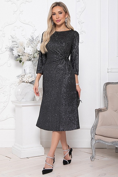* Нарядное платье полуприлегающего силуэта с расклешенной юбкой, из трикотажного полотна с блеском(ткань производство Ю.Корея).Изюминка платья ассиметричный узел-перекрут.