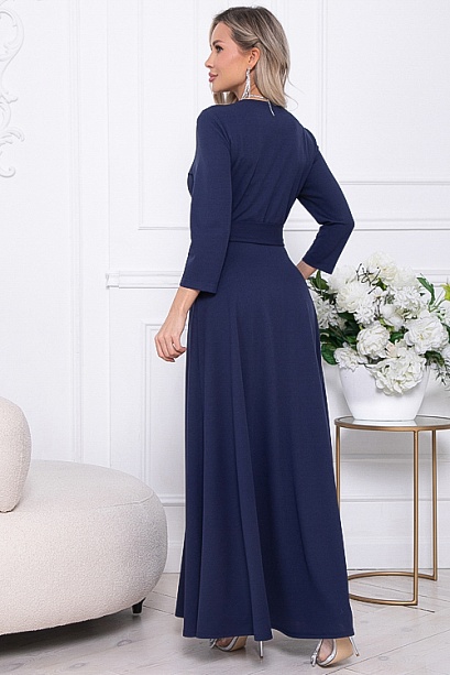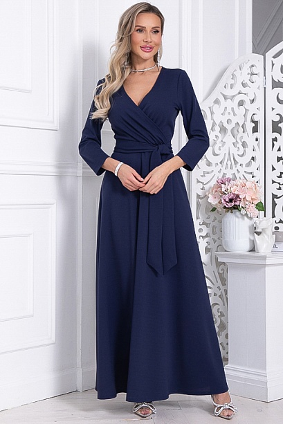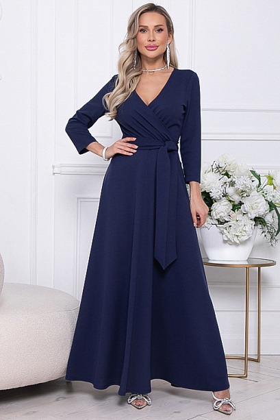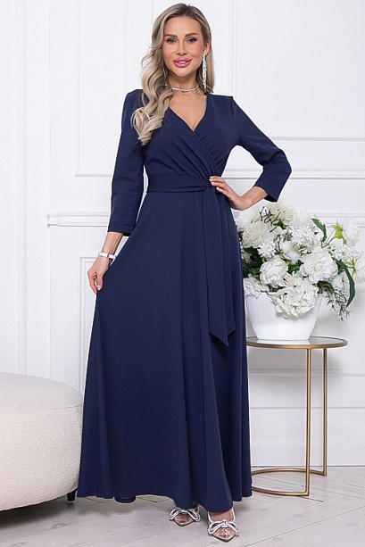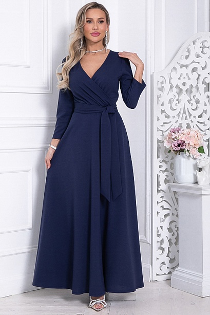 * Нарядное элегантное платье из трикотажного полотна,отрезное по лини талии с расклешенной юбкой.Лиф платья с полным запахом,задрапированным по линии талии.Пояс из основной ткани в комплекте.
