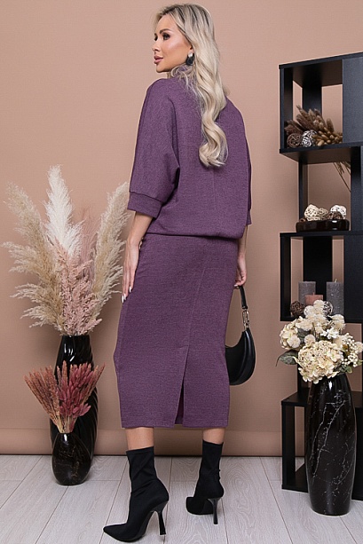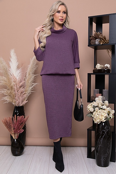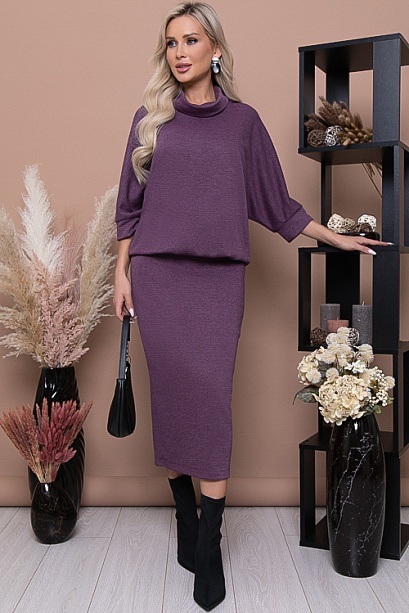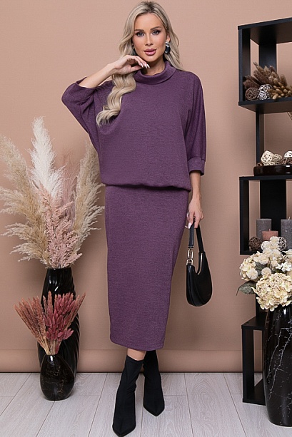 * Платье из мягкого эластичного трикотажного полотна.Лиф платья свободного силуэта,с цельнокроеными рукавами на манжете и воротником "хомут".Юбка прямая,слегка зауженная к низу,по спинке со шлицей.По талии платье зафиксировано на резину.Из верхней части платья формируется глубокий свободный напуск. * Длина спинки:  44-129  46-130  48-131  50-133  52-133  54-133 * Длина рукава от горловины:  44-49  46-49  48-49  50-50  52-51  54-51 * Рост модели  168 см * Размер модели  44 50% вискоза,45% п/э,5% лайкра