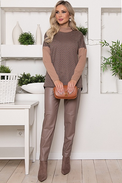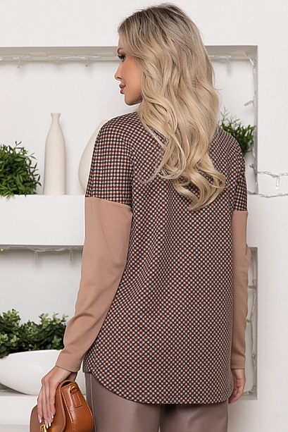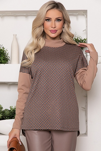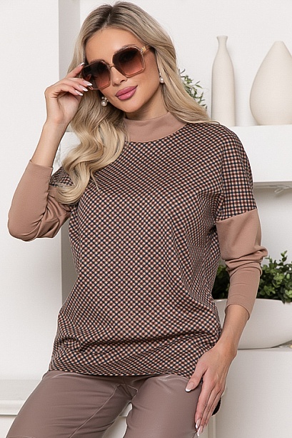 * Комбинированный джемпер из жаккардового трикотажного полотна в гусиную лапку и и однотонного джерси. * Длина спинки:  44-67   46-67   48-68   50-69   52-70   54-70 * Длина рукава от горловины: 44-68   46-69   48-69   50-70   52-70 * Рост модели 168 см * Размер модели  44 60% вискоза,35% п/э,5% лайкра