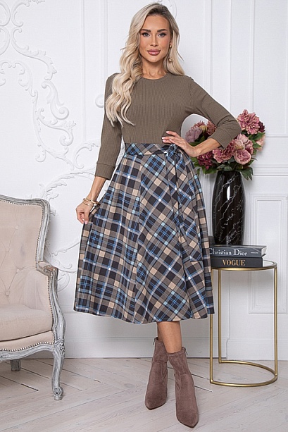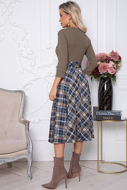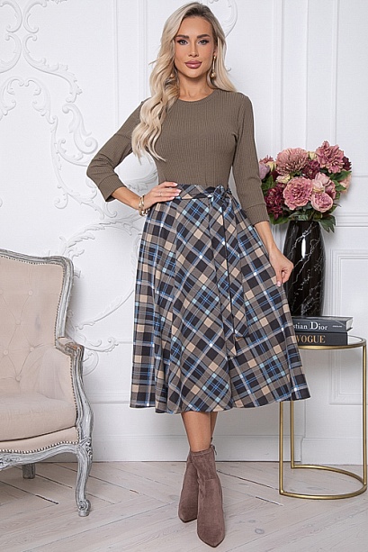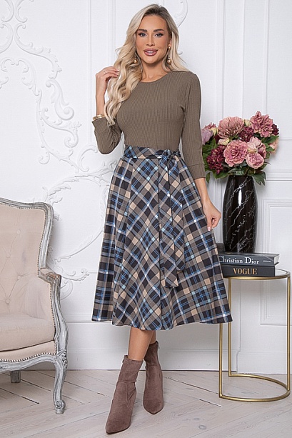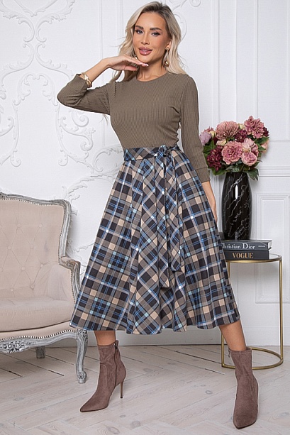 * Комбинированное платье. Верх из комфортного, вискозного трикотажного полотна лапша, юбка расклешенная из трикотажного полотна джерси, с поясом в комплекте.
