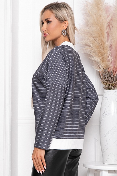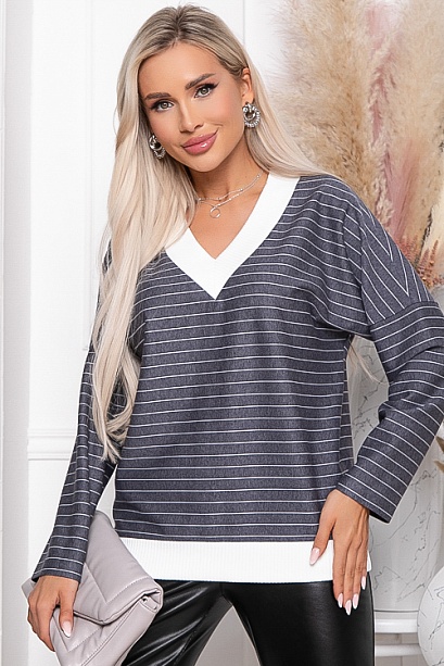 * Джемпер из трикотажного полотна джерси свободного силуэта с V-вырезом горловины. Горловина и низ изделия выполнены из трикотажной ,вискозной рибаны. * Длина спинки:  44-56,5   46-57,5   48-58   50-59   52-60   54-61 * Длина рукава от горловины:  44-64   46-65   48-66   50-66   52-66,5   54-67 * Рост модели  168 см * Размер модели  44 60% вискоза,35% п/э,5% лайкра