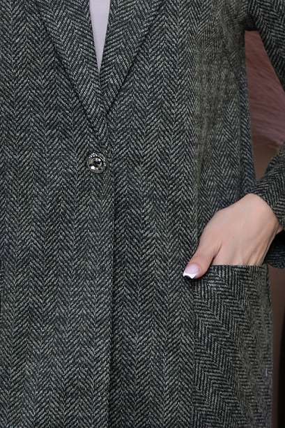 * Жакет свободного силуэта из теплого комфортного трикотажного полотна в елочку,прямого свободного силуэта .По переду центральная застежка на одну пуговицу.Воротник отложной с лацканами.По переду жакета накладные удобные карманы. * Длина спинки:  44-71   46-72   48-73   50-74   52-74   54-75 * Длина рукава:  44-61   46-61   48-61   50-62   52-62   54-62 * Рост модели  168 см * Размер модели  44 50% вискоза,45% п/э,5% лайкра