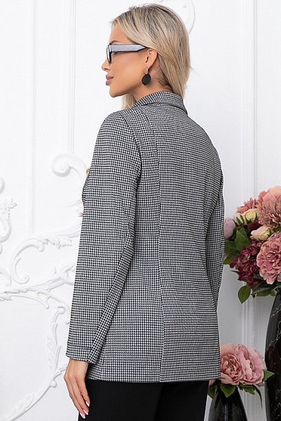 * Жакет из трикотажного полотна полуприлегающего силуэта, по переду и спинке на подкладе. Центральная застежка на три пуговицы. Воротник отложной с лацканами. По переду функциональные карманы с клапанами.