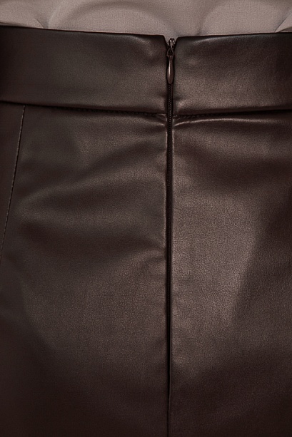 * Юбка трапецевидного силуэта из эко кожи с притачным поясом и застежка молния по спинке.