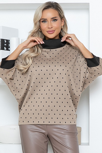 * Джемпер из жаккардового трикотажного полотна свободного силуэта с цельнокроеными рукавами и контрастной отделкой.Ворот-хомут и манжеты рукавов из трикотажного вискозного джерси.