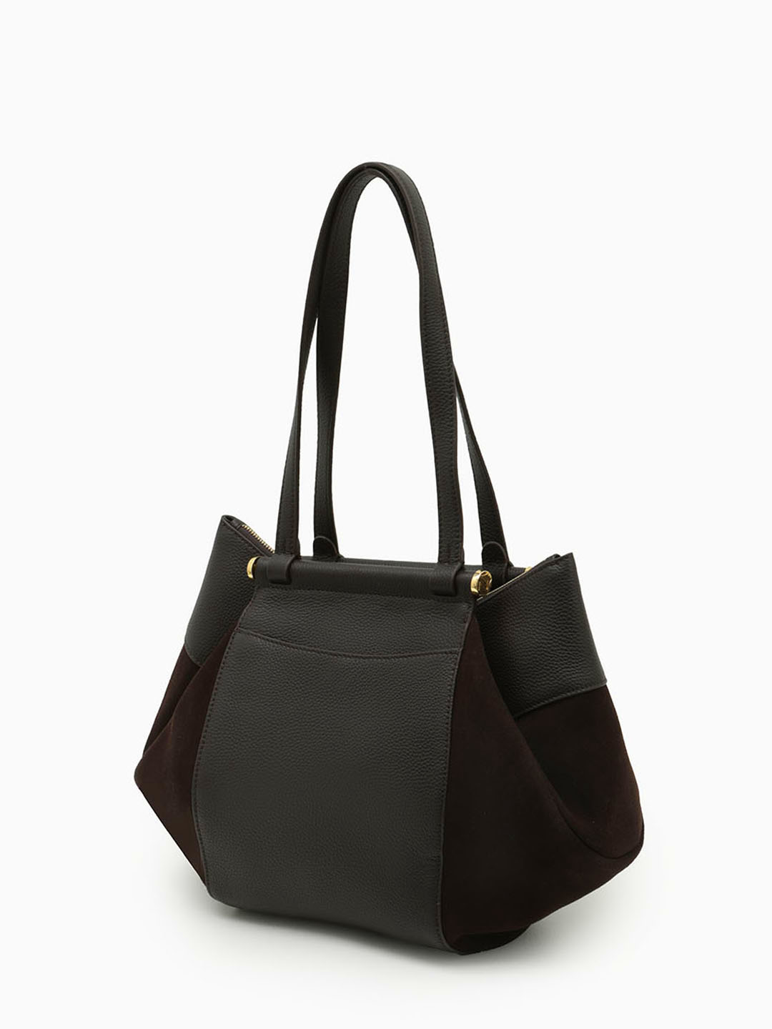 Классическая сумка с длинными ручками от Nannini из комбинации замши и кожи коричневого цвета na19045 suede lima sigaro