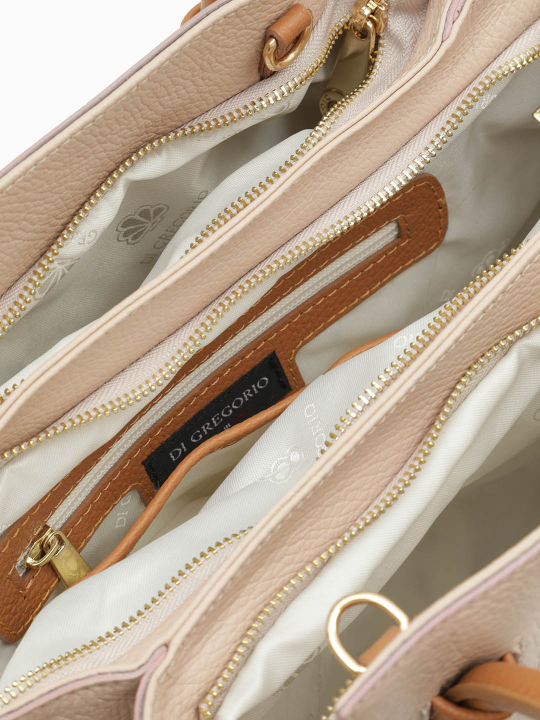 Классическая сумка с тремя отделениями и именной гравировкой Di Gregorio в розовом цвете gr1988 vitello nude caramello