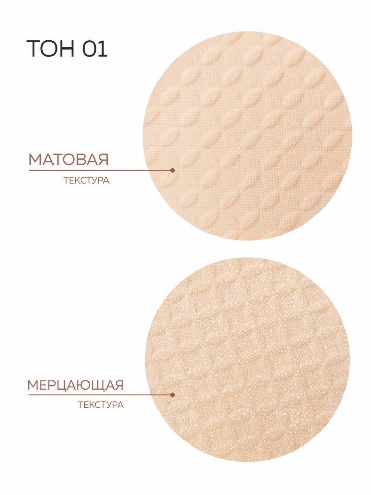 Тонкая текстура пудры не меняет цвет лица и, не оседая в порах, не может вызвать угревой сыпи или иного дискомфорта. Пудра насыщена пигментами, имеющими вид микроскопических сфер, гарантирующих ровность и шелковую легкость покрытия. При этом состав не включает парабенов и потенциальных аллергенов. Пудру можно наносить на основу или самостоятельно на любой тип кожи.