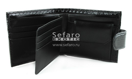 Застежка - хлястик на кнопкеПортмоне из кожи морской змеи держит ваши деньги и документы в сохранности так же прочно, как живая змея держит жертву в своих зубах