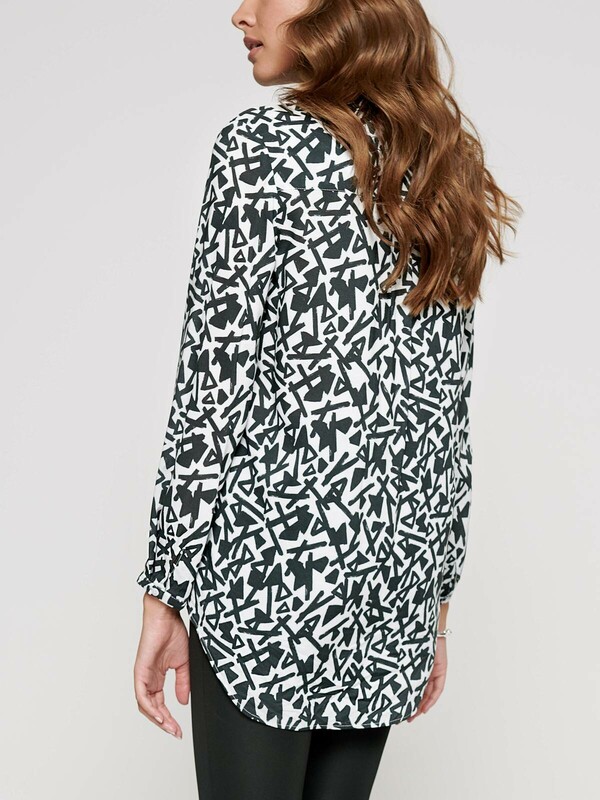 Рубашка с геометрическим рисунком из хлопка премиального качества LBL 1091 – свежее и оригинальное прочтение классики. Девушка оценит удлиненную спинку фигурной формы, свободную посадку по фигуре и безупречное сочетание новой рубашки с любимыми джинсами, леггинсами и брюками. PREMIUM COTTON: хлопок премиального качества мягкий, приятный к телу и «дышащий». • свободный силуэт • классический воротник • втачные рукава с манжетами • застежка на пуговицы, • набивной геометрический принт полотна • накладной карман • удлиненная спинка • фигурный низ • хлопок премиального качества • сохранение формы и цвета при соблюдении рекомендаций по уходу • свежее и оригинальное прочтение классики. хлопок 100%