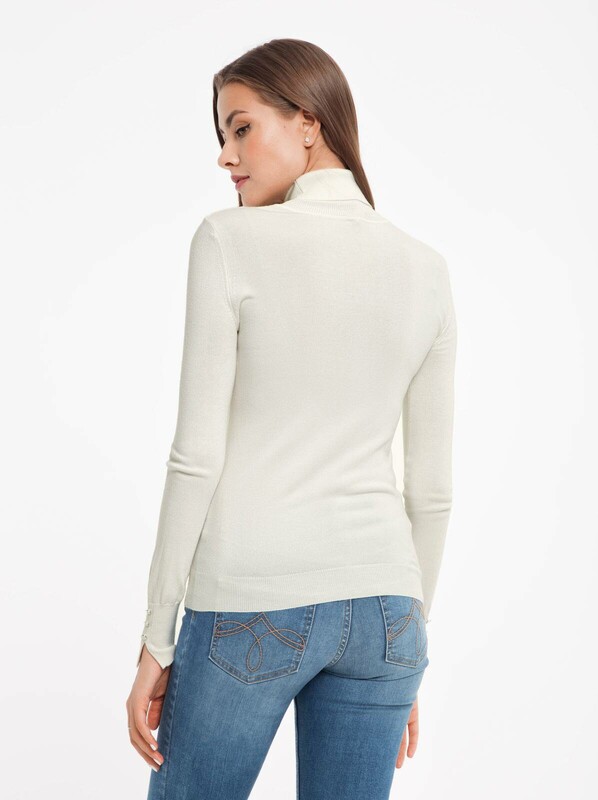 Классический трикотажный свитер с высоким воротником - стойкой, который входит в базовый гардероб любой девушки. Благодаря вискозе, входящей в состав пряжи, идеально садится на фигуру и комфортен в носке. При максимально универсальной конструкции имеет "изюминку" - небольшие разрезы на рукавах, украшенные пуговицами. Преимущества модели:- нейтральная цветовая гамма, подходящая к каждому гардеробу;- прямой силуэт и высокий воротник-стойка;- теплая, уютная и приятная к телу пряжа премиального качества.
