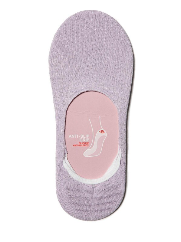 Подследники женские из хлопка с люрексом, на запяточной части антискользящее покрытие для предотвращения сползания, однотонные.