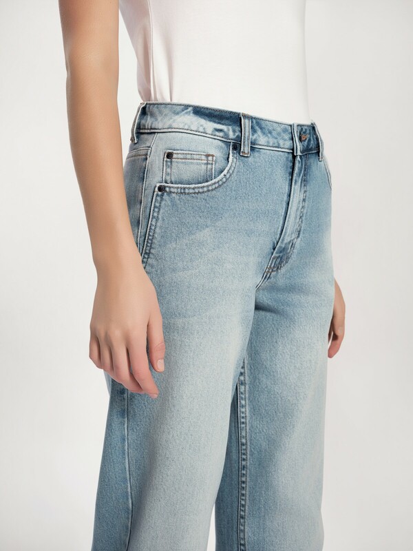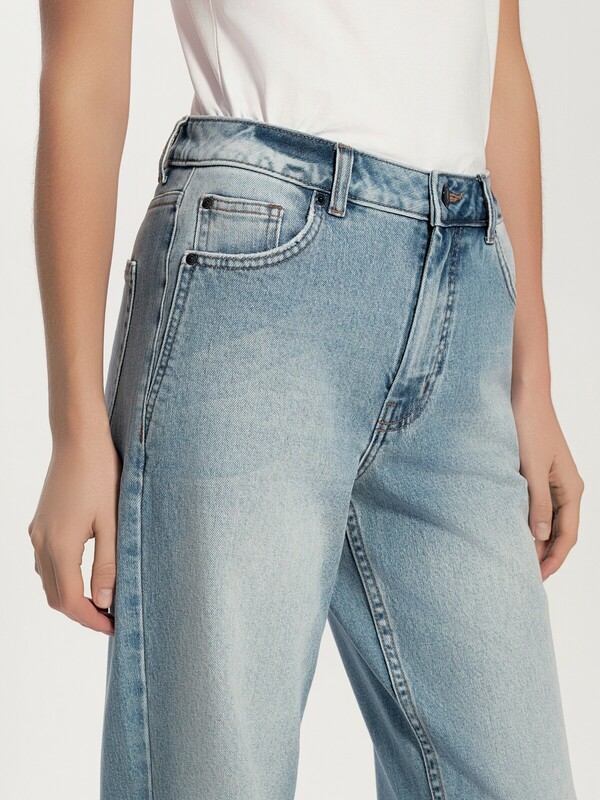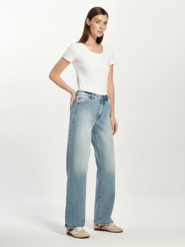 Интересный дизайн карманов, контрастная темно-синяя фурнитура, эффект потертостей придают модели уникальность. Джинсы wide leg идеальный вариант для стилистических экспериментов, они помогут вам выделиться и подчеркнут вашу индивидуальность. • wide leg – широкий крой от бедра • комфортная посадка • оригинальные передние карманы со скошенным краем • деним премиального качества • 5 функциональных карманов • классическая обработка низа с эффектом потёртостей • шлёвки для ремня • тёмно-синяя фурнитура • застёжка на металлическую пуговицу и молнию, скрытую планкой • для сохранения формы джинсов и насыщенности оттенка соблюдайте рекомендации по уходу • созданы для ваших выразительных образов Рост 164: длина по внутреннему шву 77 см Рост 170: длина по внутреннему шву 82 см Состав: 99% хлопок, 1% эластан Цвет: light blue хлопок 99%, эластан 1%