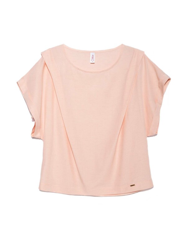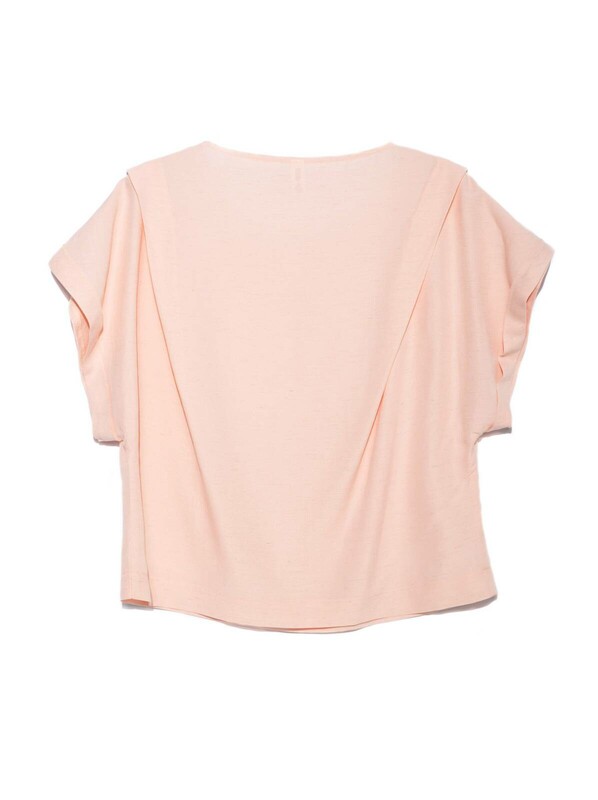 Ультрамодная блузка с приспущенным плечом создана из легкого, дышащего и практически невесомого вискозного полотна с добавлением льна. Нежный цвет «пудра», мягкий свободный крой и драпированные складки в области плеча добавят образу элегантности и женственности.